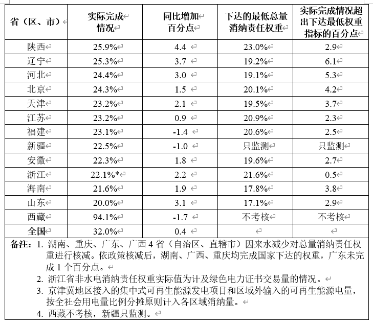 (一)可再生能源電力總量消納責任權(quán)重完成情況