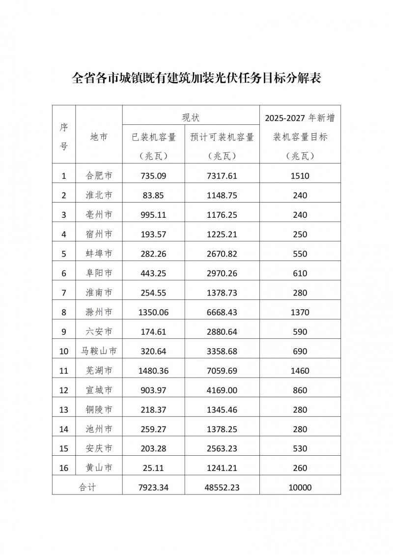 到2027年,新增城鎮(zhèn)既有建筑加裝光伏裝機容量力爭達到10000兆瓦,建筑光伏一體化在全省各類建筑實現(xiàn)規(guī)?;?、市場化應用,基本形成安徽特色建筑光伏產業(yè)高質量發(fā)展格局。