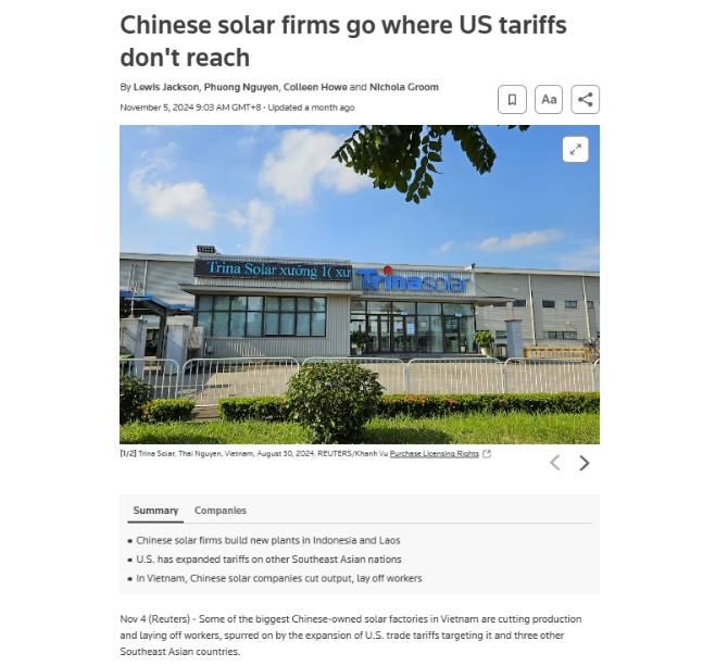 面對美方層層圍堵,中國光伏企業(yè),尤其是東南亞產(chǎn)能也在尋找新的出路。