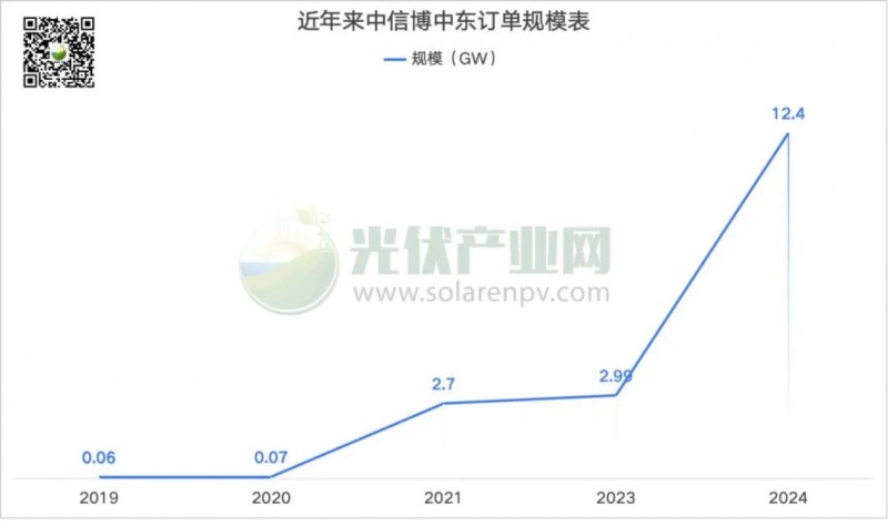 最早的一筆訂單可以追溯到2019年,和阿聯(lián)酋·迪拜的DEWA4項目,該項目位于中東迪拜,涉及安裝一個59.8MW太陽能發(fā)電系統(tǒng),完全使用SkyLine太陽能追蹤器。據(jù)統(tǒng)計,2024年中信博在中東就斬獲12.4GW光伏項目訂單。