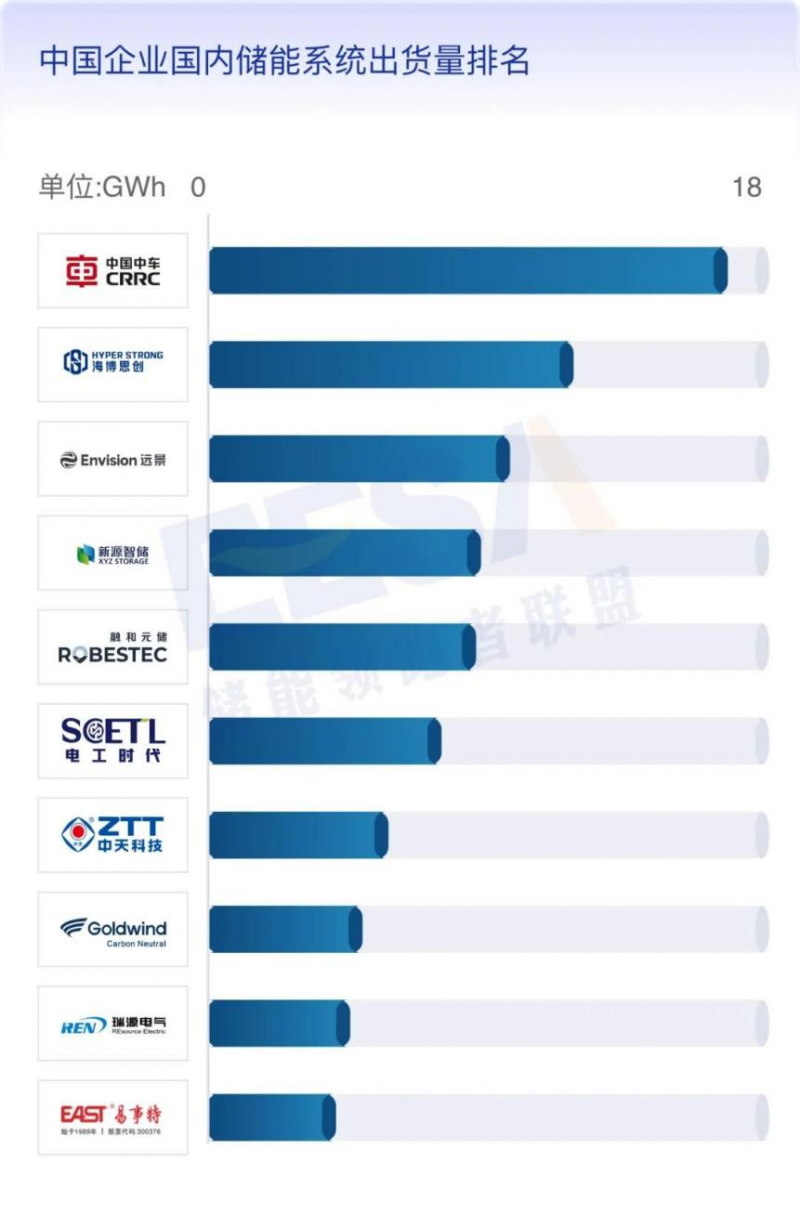 2、中國企業(yè)國內(nèi)儲能系統(tǒng)出貨量排名