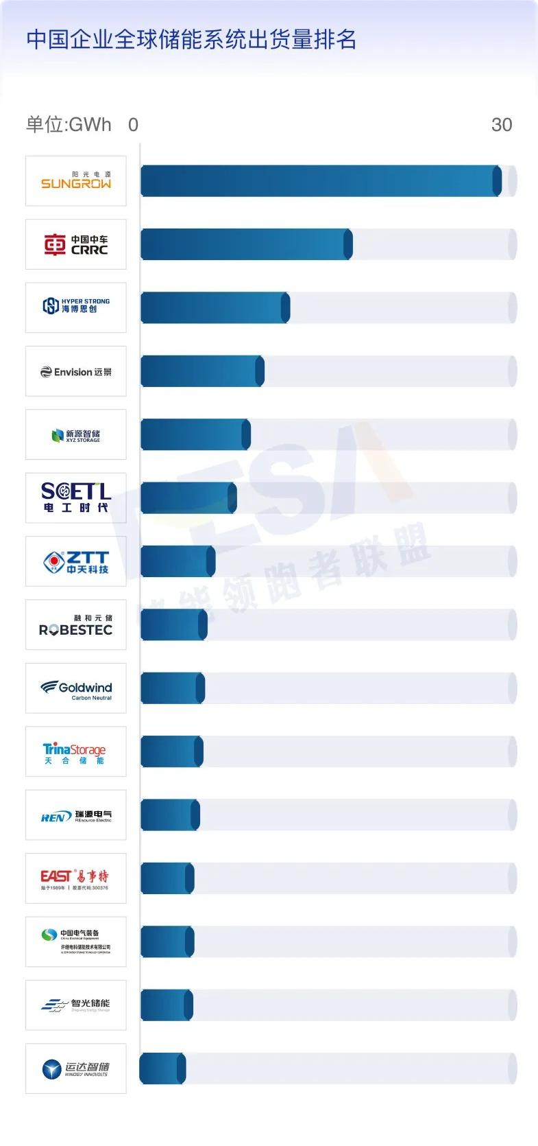 1、中國企業(yè)全球儲能系統(tǒng)出貨量排名