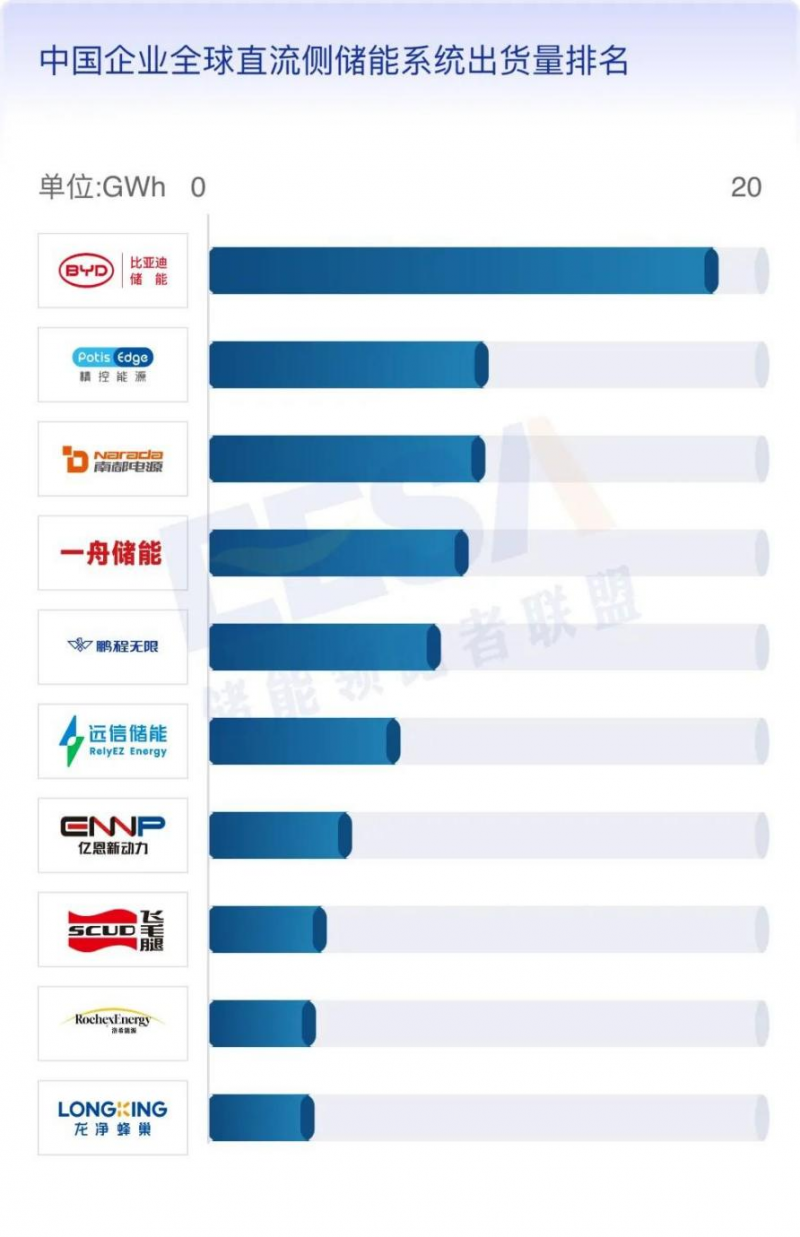 3、中國企業(yè)全球直流側(cè)儲能系統(tǒng)出貨量排名
