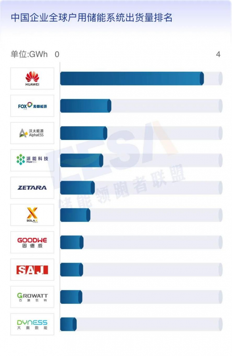 4、中國企業(yè)全球戶用儲能系統(tǒng)出貨量排名