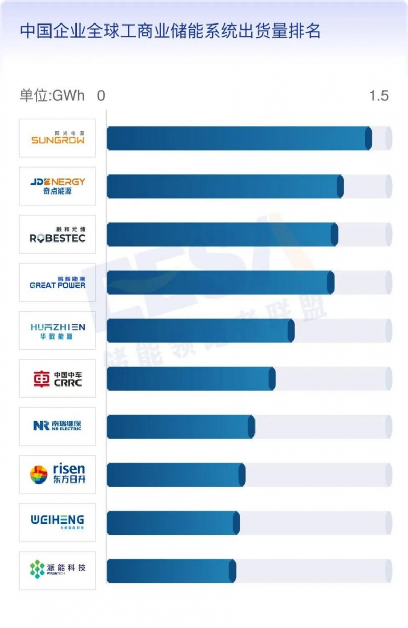 5、中國企業(yè)全球工商業(yè)儲能系統(tǒng)出貨量排名
