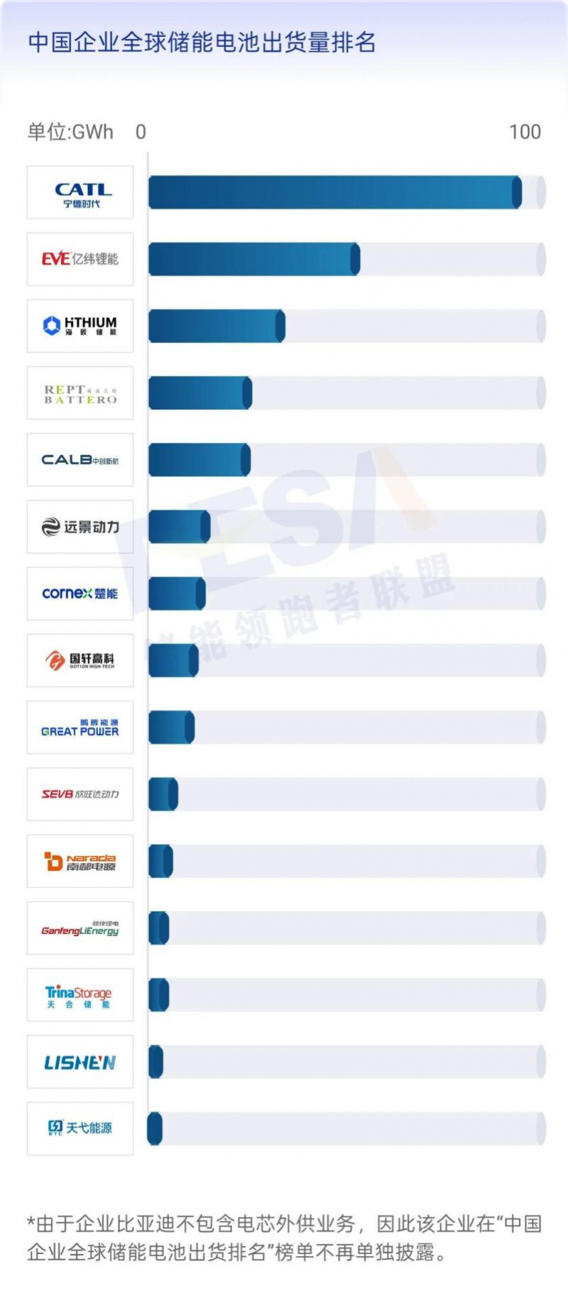 (2)EESA通過對第三方數(shù)據(jù)來源的核對、檢驗以及建模預(yù)測得出最終企業(yè)排名以及產(chǎn)業(yè)鏈規(guī)??倲?shù)據(jù)。由于調(diào)研方法、樣本以及調(diào)查資料收集范圍的限制,該數(shù)據(jù)僅代表調(diào)研時間和人群的基本狀況,為關(guān)心和支持儲能行業(yè)發(fā)展的所有同仁提供基本參考。