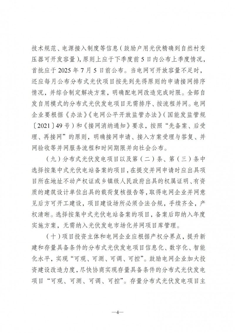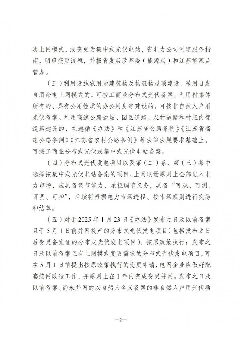 ·存量項(xiàng)目過渡:2025年1月23日前備案的項(xiàng)目,若在5月1日前并網(wǎng),仍按原政策執(zhí)行;未并網(wǎng)的非自然人戶用項(xiàng)目可合并變更備案,保障歷史項(xiàng)目權(quán)益。
