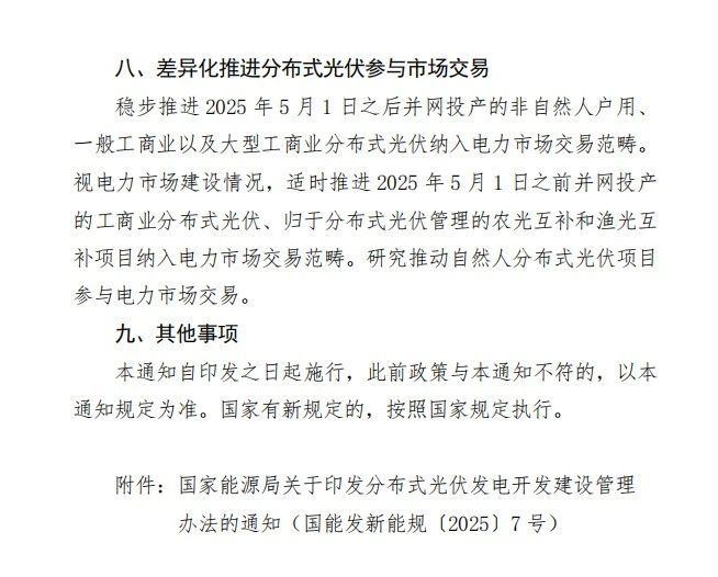 對于國能發(fā)新能規(guī)〔2025〕7號發(fā)布之日前已備案、于2025年5月1日之后并網(wǎng)投產(chǎn),且利用農(nóng)業(yè)大棚和禽畜棚舍屋頂?shù)冉ㄔO(shè)屋頂分布式光伏項目,以及在其它合法合規(guī)建設(shè)的屋頂上建設(shè)的總裝機容量超過6兆瓦的分布式光伏項目,自治區(qū)能源局將另行組織項目評估。項目業(yè)主可按照自治區(qū)能源局要求,及時報送調(diào)整為集中式光伏電站的申請。評估通過后,按照集中式光伏電站相關(guān)管理辦法執(zhí)行。