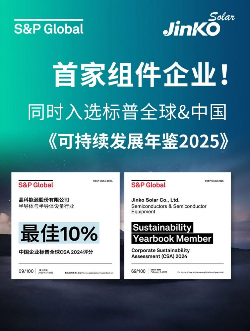 首家組件企業(yè)!晶科能源同時(shí)入選標(biāo)普全球&中國(guó)《可持續(xù)發(fā)展年鑒2025》