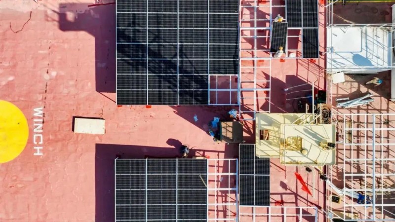 2023年,舟山中遠(yuǎn)海運(yùn)重工為“中遠(yuǎn)盛世”輪進(jìn)行太陽能光伏系統(tǒng)改裝工程,安裝的336塊太陽能電池板,在光照條件良好時(shí)每天可提供約1000度電,4小時(shí)光照轉(zhuǎn)換的電能就能滿足全船貨艙照明24小時(shí)電能需求。
