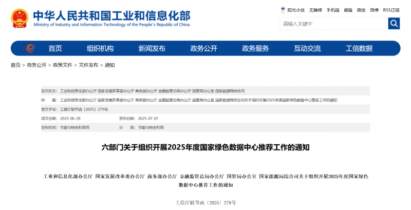 (四)工業(yè)和信息化部會同國家發(fā)展改革委、商務(wù)部、金融監(jiān)管總局、國管局、國家能源局6個部門通過專家評審、復(fù)核等方式,確定2025年度國家綠色數(shù)據(jù)中心名單并按程序發(fā)布。
