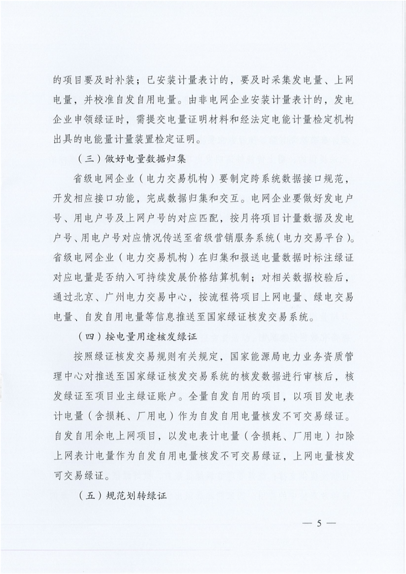 對(duì)已建檔立卡的可再生能源發(fā)電項(xiàng)目所生產(chǎn)的全部電量核發(fā)綠證,實(shí)現(xiàn)綠證核發(fā)全覆蓋;對(duì)分散式風(fēng)電、分布式光伏發(fā)電項(xiàng)目的上網(wǎng)電量,核發(fā)可交易綠證。