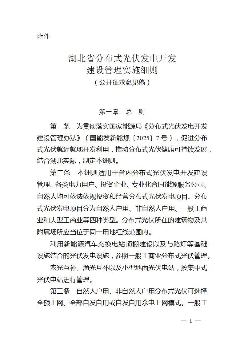附件:《湖北省分布式光伏發(fā)電開(kāi)發(fā)建設(shè)管理實(shí)施細(xì)則(公開(kāi)征求意見(jiàn)稿)》