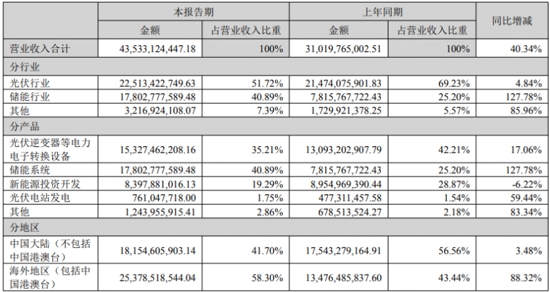 分行業(yè)來看,光伏行業(yè)報(bào)告期內(nèi)營(yíng)收225.13億元,同比增長(zhǎng)4.84%;儲(chǔ)能行業(yè)營(yíng)收178.03億元,同比增長(zhǎng)127.78%。