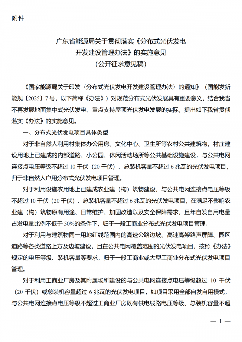 附件:廣東省能源局關(guān)于貫徹落實《分布式光伏發(fā)電開發(fā)建設(shè)管理設(shè)管理辦法》的實施意見(公開征求意見稿)