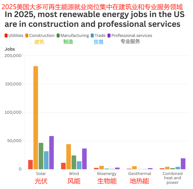 2022至2024年間,美國(guó)太陽(yáng)能新增崗位超過(guò)5萬(wàn)個(gè),一度超過(guò)生物能源、地?zé)岬刃袠I(yè)的總和。這還不算,就連被稱(chēng)為“煤海”的蒙大拿州與懷俄明州,兩地可再生能源崗位的年增幅也達(dá)到了15.6%和15%,太陽(yáng)能正悄然成為地方經(jīng)濟(jì)的“隱形支柱”。