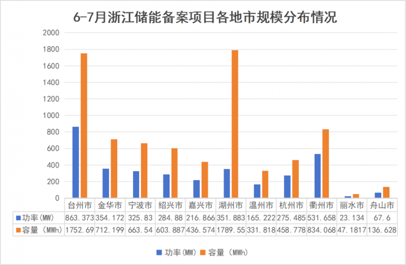 從地域分布來看項目備案數(shù)量,寧波市遙遙領先,共有151個,規(guī)模方面,寧波6月備案規(guī)模為32.74MW/74.84MWh,7月備案規(guī)模為293.09MW/588.67MWh,環(huán)比增長約686.87%。