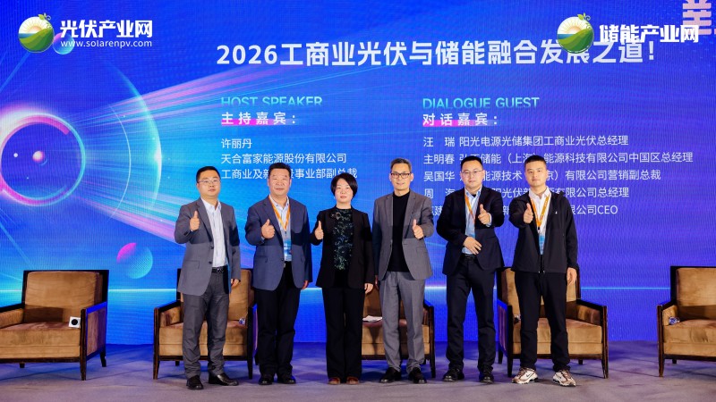 陽光電源光儲集團工商業(yè)光伏總經理汪瑞、弘正儲能(上海)能源科技有限公司中國區(qū)總經理主明春、漢伏能源技術(南京)有限公司營銷副總裁吳國華、安徽烈陽光伏新能源有限公司總經理周海、上海萊拓新能源科技有限公司CEO范建偉,圍繞“2026工商業(yè)光伏與儲能融合發(fā)展之道!”展開深度交流分享,這場思想的碰撞不僅激蕩出耀眼的火花,更照亮了未來商業(yè)化落地的可行路徑。