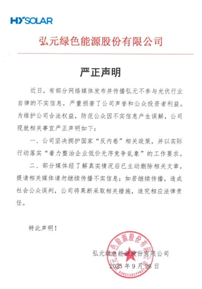 然而爭議并未就此平息。9月,弘元綠能“被踢出自律名單”的消息曝出,一度令其股價跌至谷底,公司不得不發(fā)布《嚴正聲明》以正視聽。