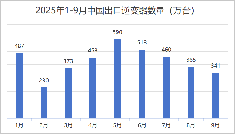 中國海關(guān)總署最新發(fā)布的2025年9月份逆變器出口數(shù)據(jù)顯示:2025年1-9月中國海關(guān)出口逆變器累計3832萬臺,其中9月出口341萬臺,環(huán)比同比均有所下降。