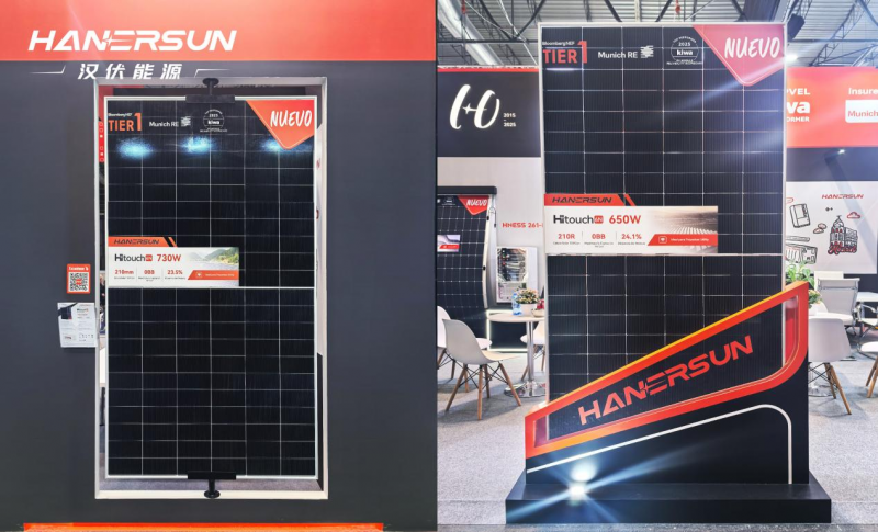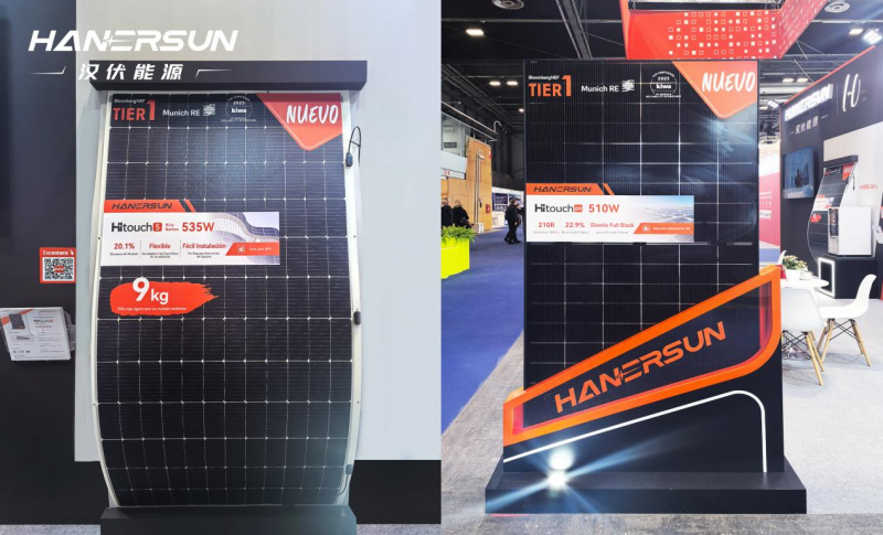此次展會,漢伏能源柔性青云系列組件HITOUCH 5 535W首次登陸西班牙,吸引眾多關注。組件僅重9kg,較傳統(tǒng)組件輕70%,無需額外支架即可貼合各類建筑屋頂,完美破解城市老舊建筑屋頂承重難題。HITOUCH 6N 730W及HITOUCH 6N 650W矩形組件同樣首秀展會,憑借高功率密度與低衰減特性,可大幅降低南部高輻照地區(qū)大型地面電站的度電成本,適配規(guī)模化裝機需求,成為展臺亮點。
