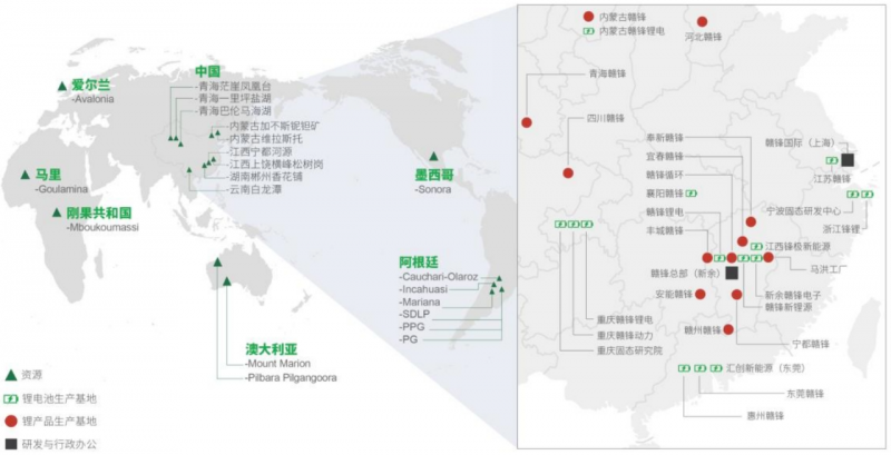 生產(chǎn)基地、研發(fā)中心、鋰資源分布