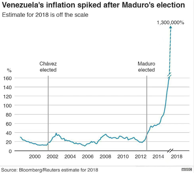 2014到2017年,貨幣供應(yīng)量暴增萬倍;2018年,通脹率達(dá)到驚人的1,300,000%。為了掩蓋發(fā)燒,政府十余年間從貨幣面值上抹掉了14個(gè)零,但這終究只是自欺欺人。