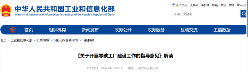 為貫徹落實國務院辦公廳《制造業(yè)綠色低碳發(fā)展行動方案(2025—2027年)》,深挖工業(yè)和信息化領域節(jié)能降碳潛力,帶動重點行業(yè)領域減碳增效和綠色低碳轉(zhuǎn)型,培育發(fā)展新質(zhì)生產(chǎn)力,工業(yè)和信息化部、國家發(fā)展改革委、生態(tài)環(huán)境部、國務院國資委、國家能源局等五部門近日聯(lián)合印發(fā)《關于開展零碳工廠建設工作的指導意見》(工信部聯(lián)節(jié)﹝2026﹞13號,以下簡稱《指導意見》)。工業(yè)和信息化部節(jié)能與綜合利用司負責同志就《指導意見》出臺的背景和意義、主要內(nèi)容等回答了記者的提問。