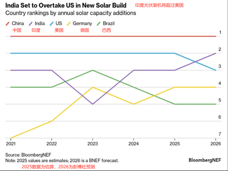 (印度2026光伏裝機(jī)將超過美國,圖源:BloombergNEF)