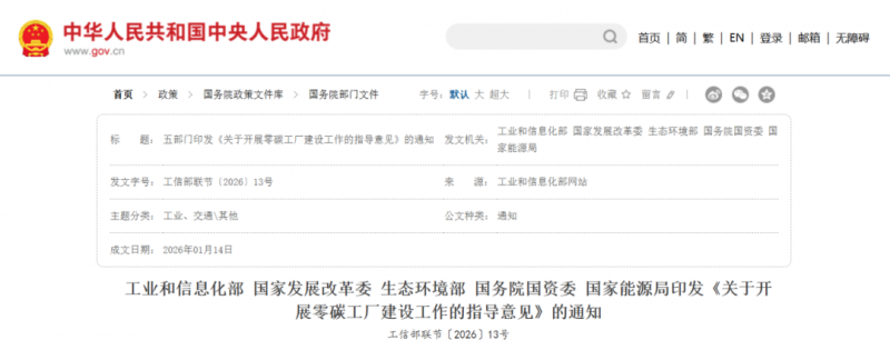 今年1月,工業(yè)和信息化部、國家發(fā)展改革委、生態(tài)環(huán)境部、國務(wù)院國資委、國家能源局等五部門聯(lián)合印發(fā)《關(guān)于開展零碳工廠建設(shè)工作的指導(dǎo)意見》。