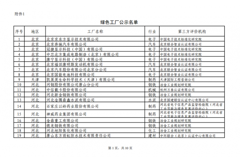 附件:1.綠色工廠公示名單