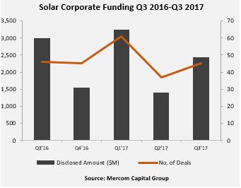 太陽(yáng)能企業(yè)的風(fēng)險(xiǎn)投資(VC)資金比一年前強(qiáng)勁,第二季度第三季度回升,同比增長(zhǎng)7%至2017年前九個(gè)月的9.85億美元。