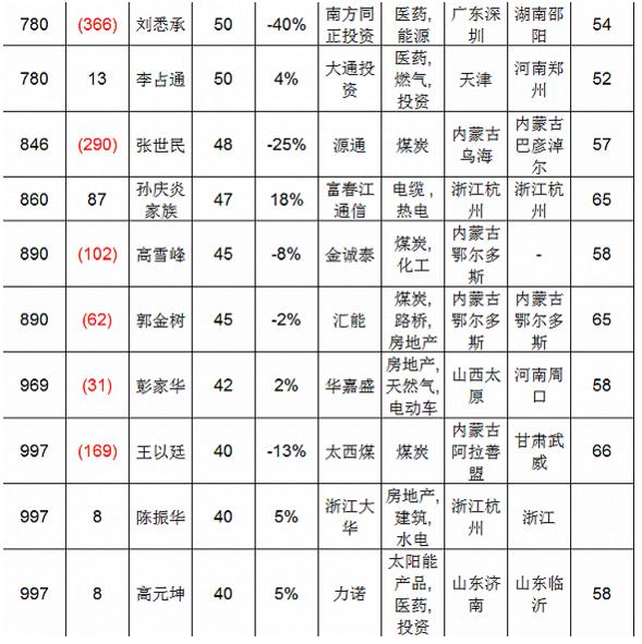 排名最后的是鄂爾多斯蒙泰集團(tuán)奧鳳廷,總資產(chǎn)20億元,在全榜單中排名第1903位。上榜的能源企業(yè)家中,資產(chǎn)增長的有38位,43位資產(chǎn)則呈縮減態(tài)勢,新增企業(yè)家7位。