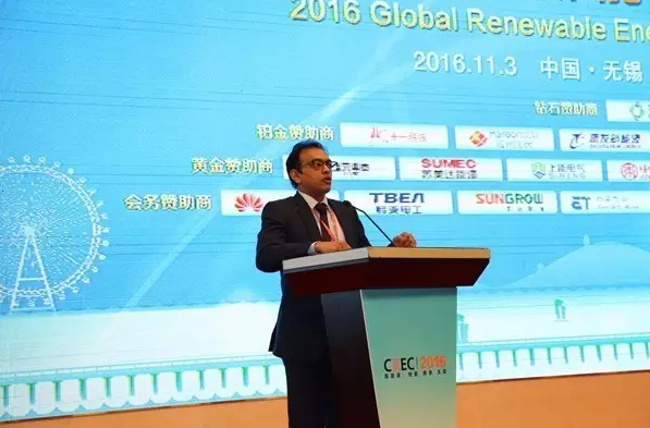 在論壇上,中科院院士、中科院上海物理研究所研究員褚君浩作了"智慧能源與微電網(wǎng)發(fā)展的關(guān)鍵技術(shù)"主題演講,著重介紹了太陽(yáng)能發(fā)電應(yīng)用、能源互聯(lián)網(wǎng)、太陽(yáng)能電池技術(shù)三個(gè)方面的內(nèi)容。印度外交部新能源司司長(zhǎng)納加拉杰﹒奈杜結(jié)合印度未來(lái)幾年可再生能源發(fā)展規(guī)劃,太陽(yáng)能、風(fēng)能等資源潛力,分享了中國(guó)企業(yè)到印度市場(chǎng)開展能源合作的機(jī)遇。