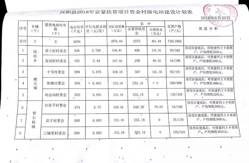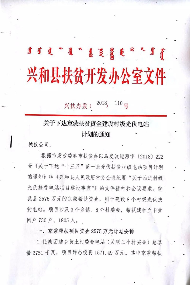 內(nèi)蒙古興和縣關于下達京蒙資金建設村級光伏電站計劃的通知