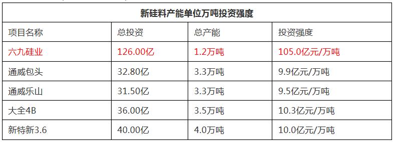 六九硅業(yè)是拖垮英利太陽能的重要敗筆,在行業(yè)狂熱頂峰期英利大手筆負債布局硅料業(yè)務,在2010年的可行性報告中,總產(chǎn)能區(qū)區(qū)1.2萬噸的六九硅業(yè)廠的總的資本支出高達126億元。彼時大家硅料生產(chǎn)成本多在30美金/kg的水準,而硅料售價卻高達100~150美金。