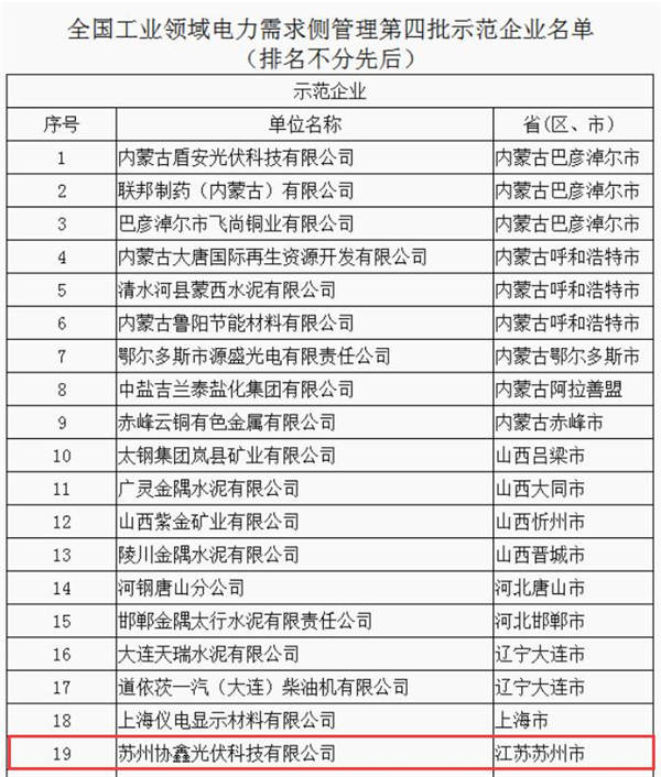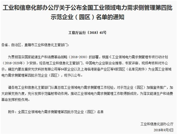 蘇州協(xié)鑫、洛陽中硅在列 工信部公布工業(yè)領(lǐng)域電力需求側(cè)管理第四批示范企業(yè)(園區(qū))