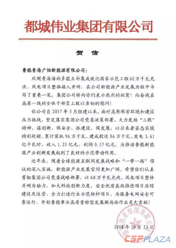 魯能海西州格爾木多能互補(bǔ)集成優(yōu)化示范項(xiàng)目是國(guó)家能源局于2017年2月公布的首批23個(gè)多能互補(bǔ)集成優(yōu)化示范工程之一,總裝機(jī)容量700兆瓦,其中200兆瓦光伏發(fā)電項(xiàng)目、400兆瓦風(fēng)電項(xiàng)目、50兆瓦光熱發(fā)電項(xiàng)目及50兆瓦儲(chǔ)能系統(tǒng)。項(xiàng)目建成后,年發(fā)電量約12.625億kWh,每年可節(jié)約標(biāo)準(zhǔn)煤約40.15萬(wàn)噸,減少煙塵排放量約5431.96噸,有效減少煤炭消耗,降低大氣污染。