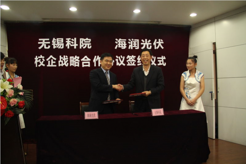 11月16日,海潤光伏科技股份有限公司在無錫市科技職業(yè)學院與該學院簽署了《校企戰(zhàn)略合作協(xié)議》。海潤光伏科技股份有限公司副董事長兼光伏總裁徐湘華與無錫科技職業(yè)學院副院長吳雪純代表合作雙方在簽署協(xié)議。海潤光伏技術、生產(chǎn)、人力資源及總裁辦相關負責人及無錫市科技職業(yè)學院的部分學生代表見證了簽約時刻。