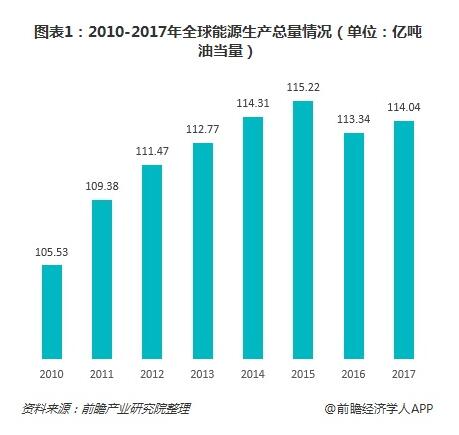 在節(jié)能減排的高度提倡,2017年全球能源生產(chǎn)總量約為114.04億噸油當(dāng)量,同比增長僅為0.62%。同時(shí),新能源的生產(chǎn)表現(xiàn)越來越出色,占比從2016年的28.49%提升至2017年的32.50%。
