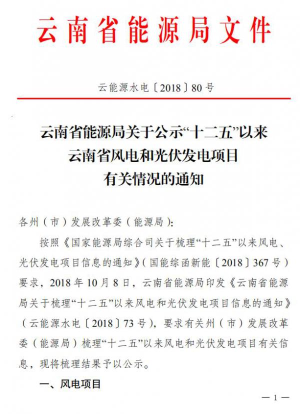 近日,云南省能源局發(fā)布《關(guān)于公示梳理“十二五”以來(lái)云南省風(fēng)電和光伏發(fā)電項(xiàng)目信息的通知》,公示時(shí)間為11月1日至11月9日。