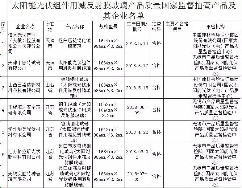 本次共抽查了天津、山西、江蘇、浙江、安徽、福建、河南、廣東等8個省、直轄市18家企業(yè)生產(chǎn)的18批次太陽能光伏組件用減反射膜玻璃產(chǎn)品。依據(jù)JC/T2170-2013(2017)《太陽能光伏組件用減反射膜玻璃》標(biāo)準(zhǔn)的要求,對太陽能光伏組件用減反射膜玻璃產(chǎn)品的碎片狀態(tài)、霰彈袋沖擊性能、光學(xué)性能、耐洗涮性能、耐中性鹽霧性能、耐濕凍性能、耐紫外性能等7個項目進(jìn)行了檢驗。抽查發(fā)現(xiàn)有3批次產(chǎn)品耐濕凍性能項目不符合標(biāo)準(zhǔn)的規(guī)定。