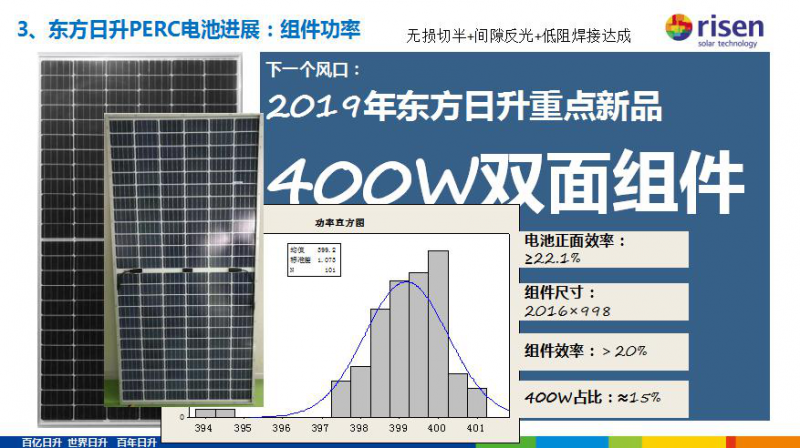 緊抓行業(yè)升級(jí)機(jī)遇,東方日升在半片、PERC高效、白色雙面雙玻等產(chǎn)品上頻頻出手,行業(yè)領(lǐng)先。2017年10月,東方日升首批高效半片組件應(yīng)用于山西陽泉光伏領(lǐng)跑者項(xiàng)目。2018年10月,東方日升首批高效72片370W白色雙面雙玻組件,應(yīng)用于白城領(lǐng)跑者基地。未來,東方日升將進(jìn)一步提升PERC電池的效率,加強(qiáng)在金屬化、漿料、新型鈍化結(jié)構(gòu)等方面的研發(fā),結(jié)合組件端創(chuàng)新,預(yù)期2019年400W雙面組件將批量投產(chǎn)。